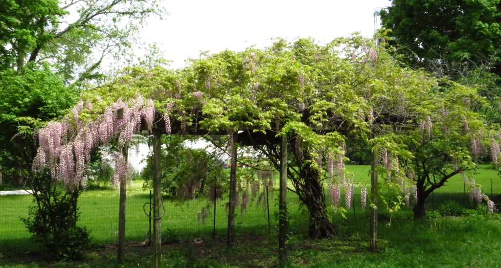 I got very excited thinking about the sweet fragrance of both the wisteria and the sweet pea, and asked if we could make a jelly from it. This year, our wisteria is out-doing itself!