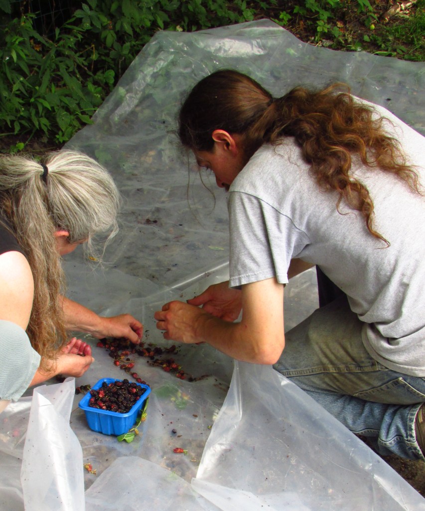 We have left sheets spread out to catch the berries as they fall, but that method also catches lots of things we don’t want. So we spread and shake, then wait a day or so and spread and shake. That seems to work best.