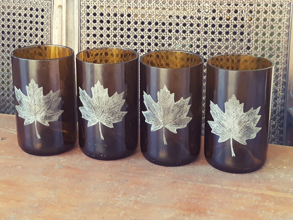 Speaking of displaying things before the year is over, here are a couple of my new glass designs for fall. I will be having a few more than these, but this is what I’ve got ready now. These glasses can be purchased individually ($6) or as a set (4 for $20).