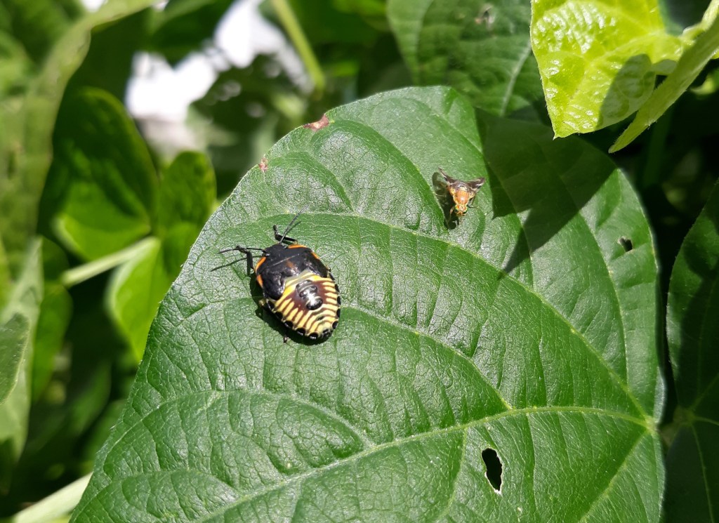 I did have to fight off a few competitors for the beans (well, I actually shared them–after all, I don’t need every one), and that brings me to my first surprise: Look who I found on a bean leaf: