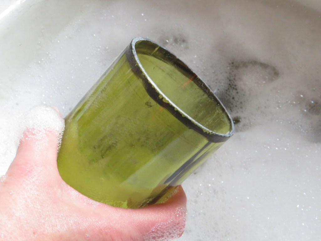 I always start by creating a score line and coaxing the glass to break using heat stress–usually a candle–which leaves a thick carbon line across both sides of the break that I have to scrub off.