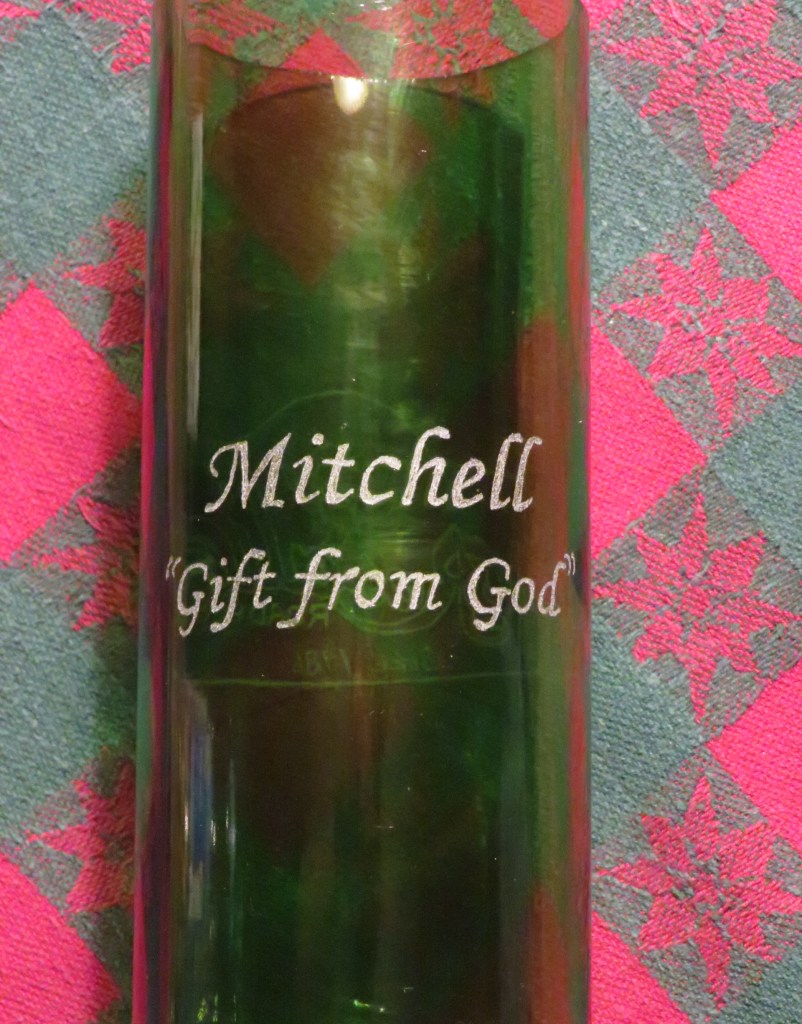 We spent some time listening to a small piece of her story (she was homeless), and I couldn’t help connecting her story with what I had been working on all day: I remembered the glass wine bottle with someone’s name on it.