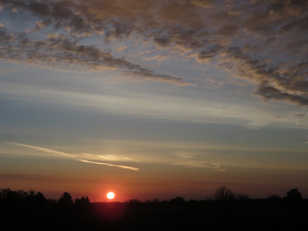 One thing I have learned by watching the sunrise is that the best color show is about 20 minutes before the sun appears. It all depends on the day, of course, because if it’s a cloudless dawn, a pink ribbon is the main sign. But if there are clouds, all kinds of unexpected beauty can happen.