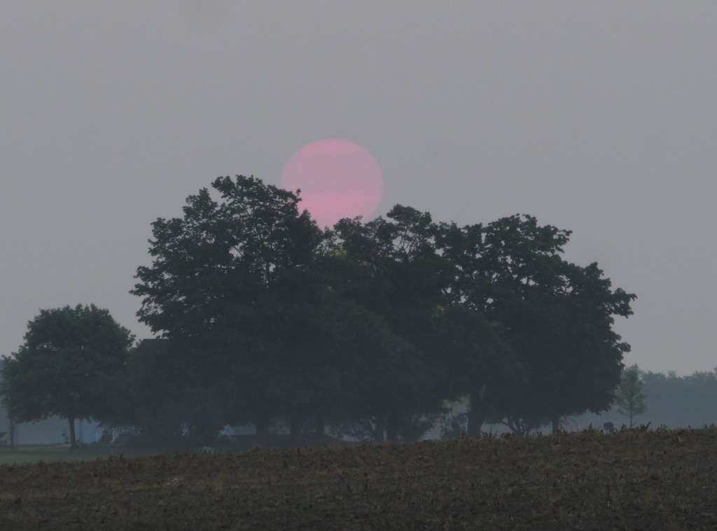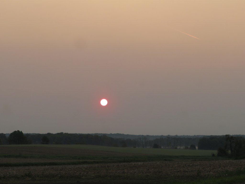 Here in Michigan, we have been covered by haze for the past week or so. The first hazy morning, I was really worried, because though the sky became light, I couldn’t see the sun at all until almost an hour after it rose. It was a weird feeling to see the light, but not be able to find even a lighter spot in the sky to indicate where the sun was. I actually gave up that first morning and went back inside.