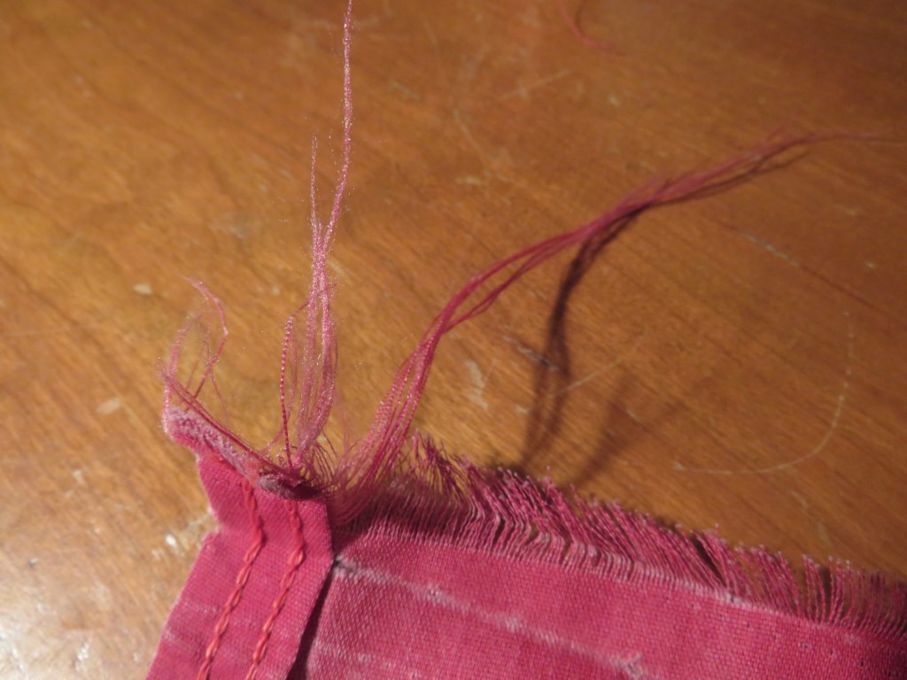 So with these thoughts in my mind, I sat down to repair Old Glory. When I examined the corner that had a loose string, I realized that it must have been flapping that way for a little while. The raw edge had begun to shred. The question was how to repair the part that had gotten loose.