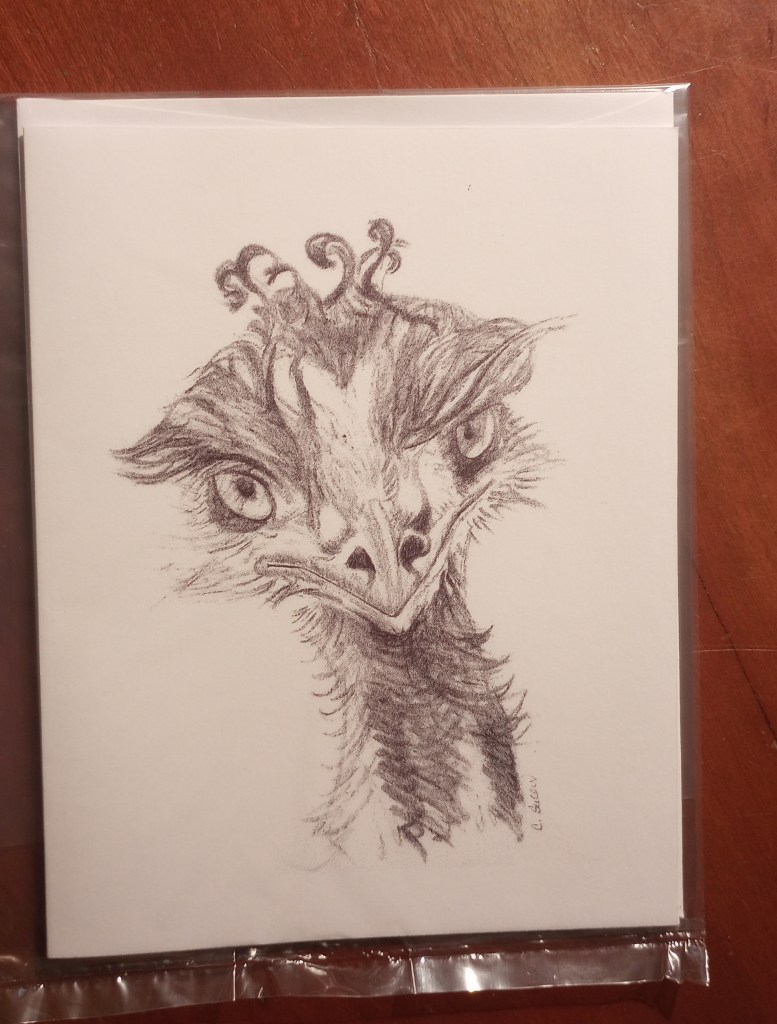 This emu just heard a cheesy pun–sheesh! The inside is blank.