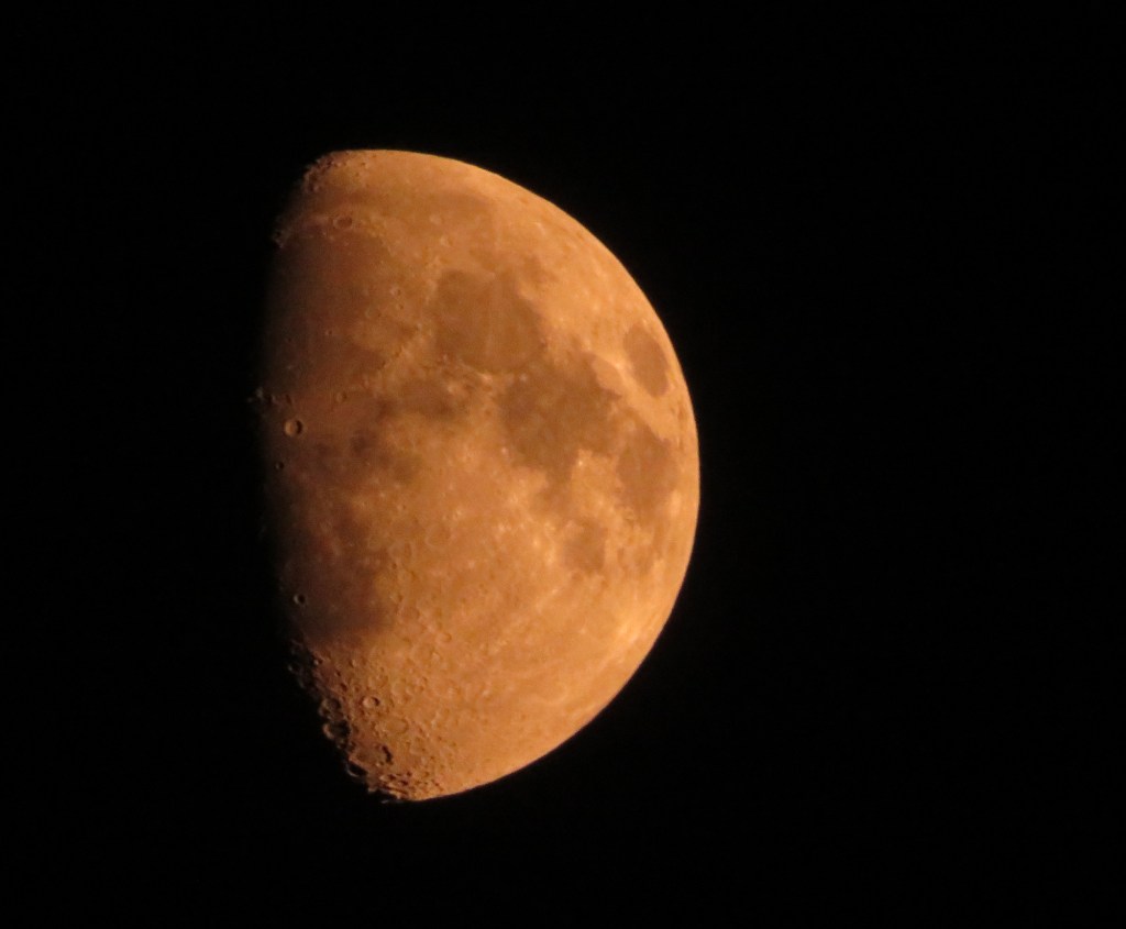 Sure enough, the sun had risen high enough to be a faint orange circle in the haze. While we watched, it began to brighten, and I tried once more, knowing it would soon be too bright to photograph. Such a wonderful haze to bring us a picture of the surface of the sun!