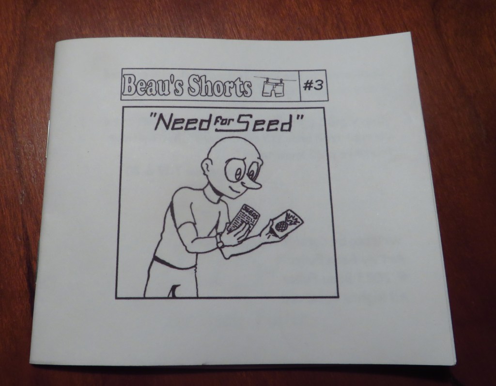 Beau has just finished his latest issue of “Beau’s Shorts.” In this one, Dr. Dumb is at it again, trying to put a garden in a bit late in the season. This issue is titled, “Need for Seed.” We get a glimpse of Dr. Dumb’s sister in this one, and boy, is she sweet! This makes the third issue of “Beau’s Shorts,” following “Cheesy Squeeze,” and “Stuck Truck.”