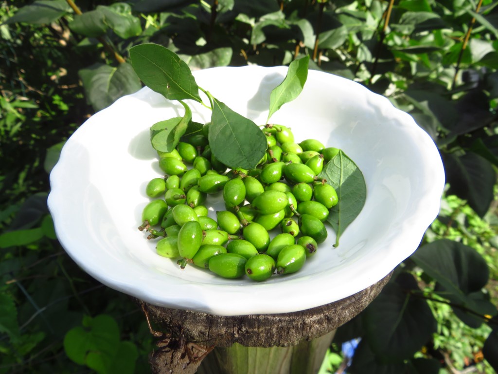 The green spicebush berries have a flavor reminiscent of lemon rind and cloves. They are very nice in this form, but when they ripen to a deep red color later on, the flavor changes. We will have to wait and see what that’s like.