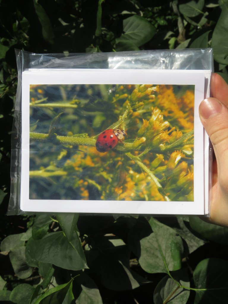 So, when I saw those few perfect maple leaves, untrampled, against the green grass, I grabbed the camera and took a few pictures. That’s how it started, and then Beau got involved (since Tony was busy cooking elderberry syrup in the kitchen), and Voila! We now have some new greeting card designs!