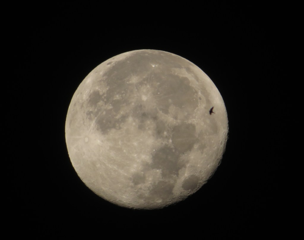 I couldn’t help but think of the song, “Fly Me To The Moon,” probably because birds fly, and they were flying in front of the moon! The lyric says, “let me play among the stars, let me see what spring is like on Jupiter and Mars. . .”