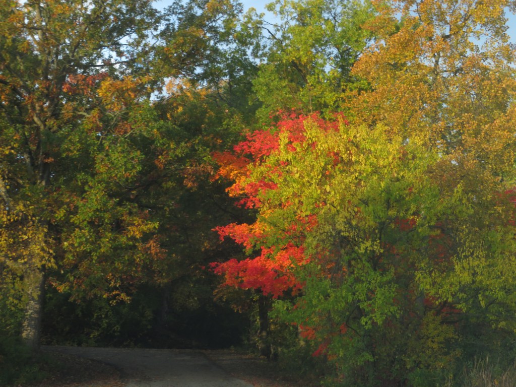 On the way over, I was counting up the days until the leaves will be on the ground. Since we are supposed to get down to freezing Sunday night, those that haven’t started changing may just fall down green. (So sad!) But all told, we will probably have mostly bare branches in this neck of the woods in about 10 days.