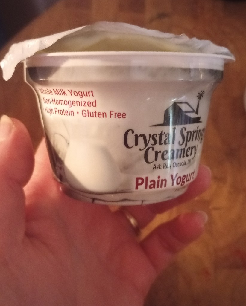 Here’s how the homemade yogurt happened: Last weekend we visited a little dairy in Indiana called the Crystal Springs Creamery. If you have ever been to Shipshewana, you may have seen some of their products there. We were charmed by the little store, which had lots of gifts, lots of interesting dairy products, and hand-dipped ice cream made right there.