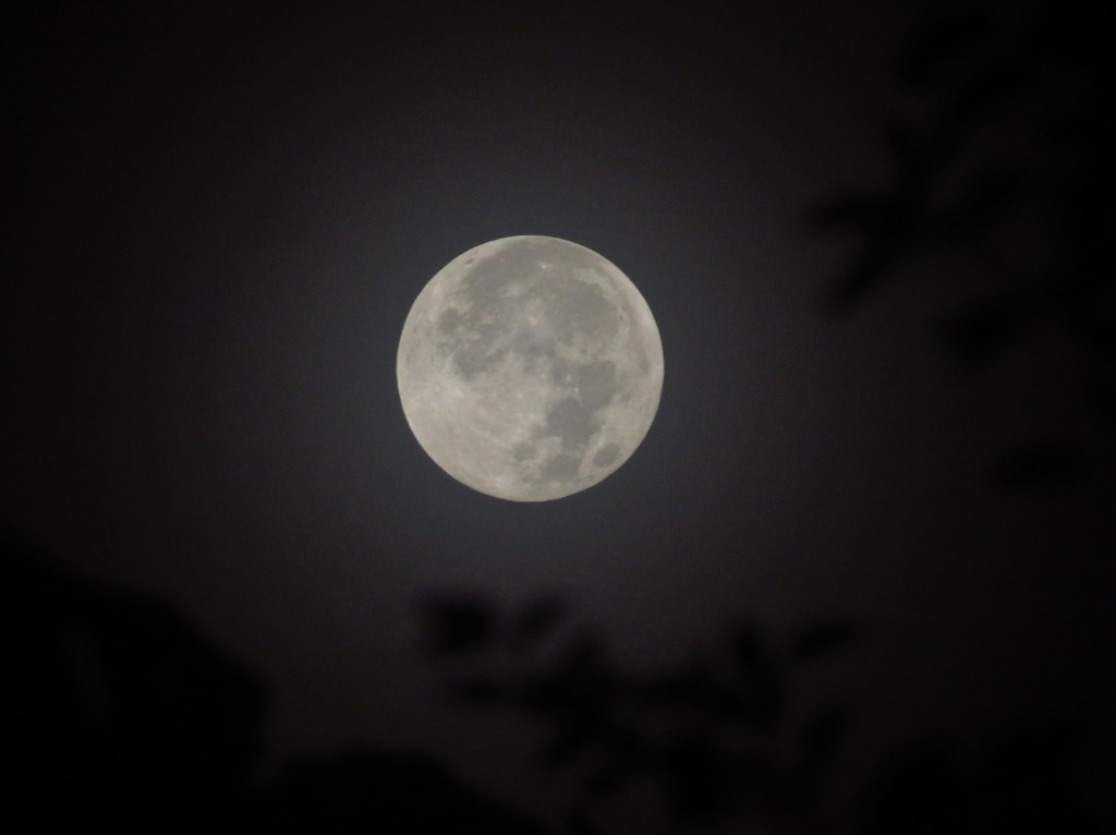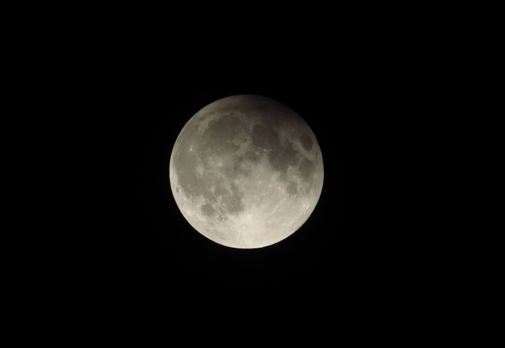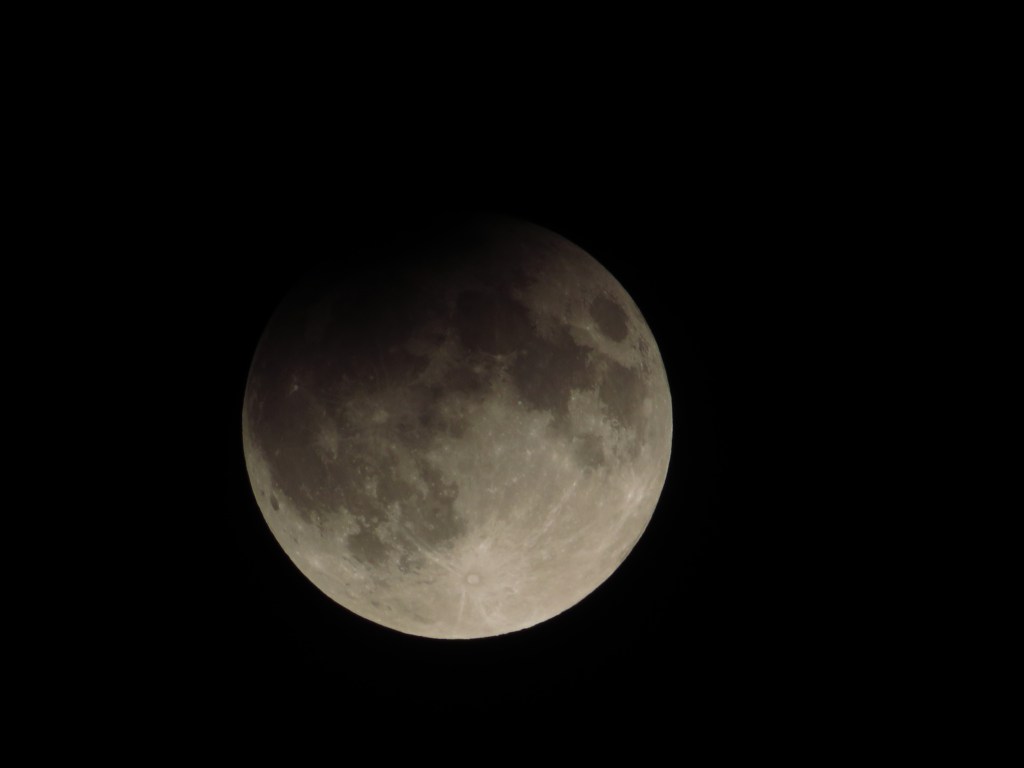 At 10:33 I stepped out back and saw it high above the trees. What I didn’t notice at the time was the reddish shadow on the left of the moon. Can you see it?