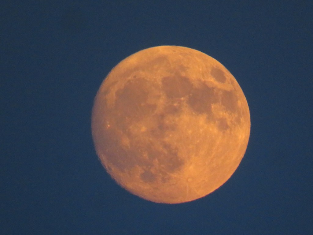 It doesn’t look very large in the photo, but our eyes pick up something about the moon that a camera can’t. The peach color faded as it rose and the sky got darker, but I was able to get one good close-up picture while the sky was still blue.