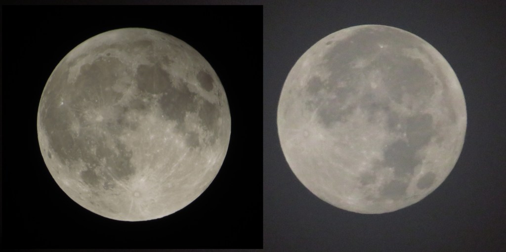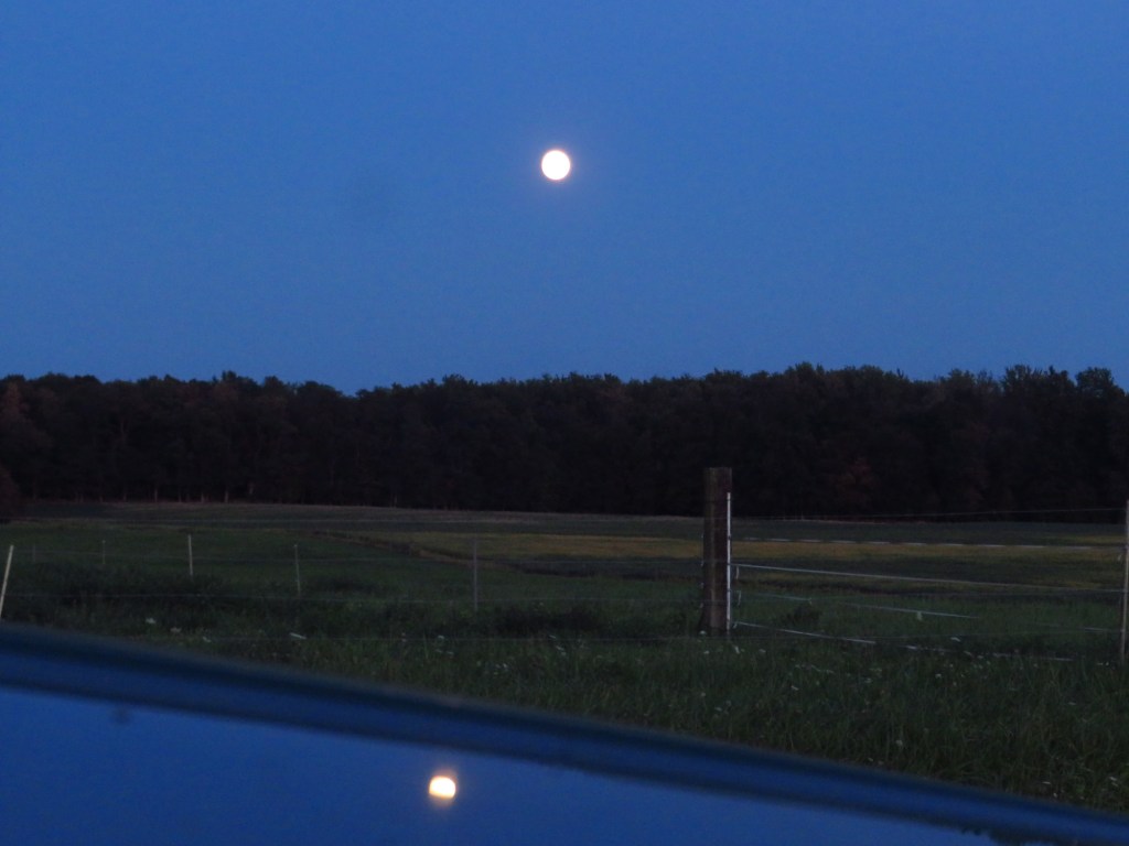 I didn’t continue to take pictures right after we got home, since a low moon would be lost in the trees there, but a couple of hours later, I tried again.