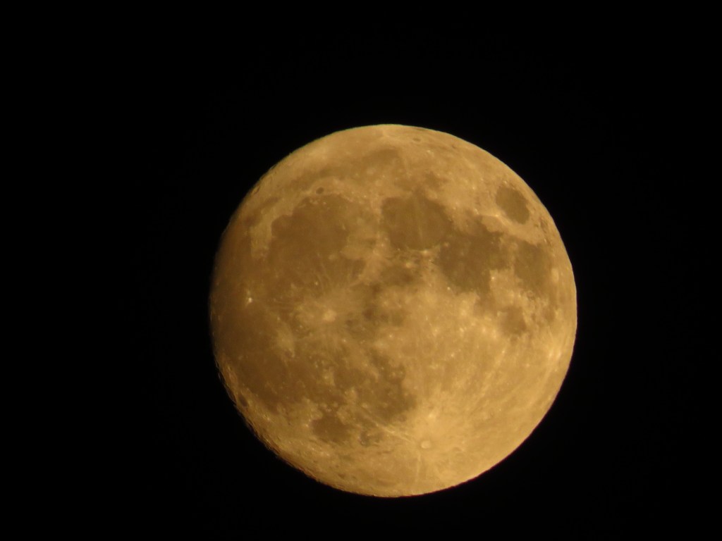 So back to last night: Not having noticed the reddish tinge on the left side of the moon earlier, I was super surprised to see this when I stepped out to take one final picture of the harvest moon before bed.