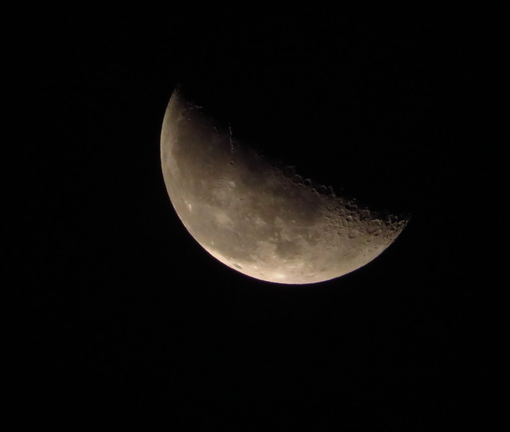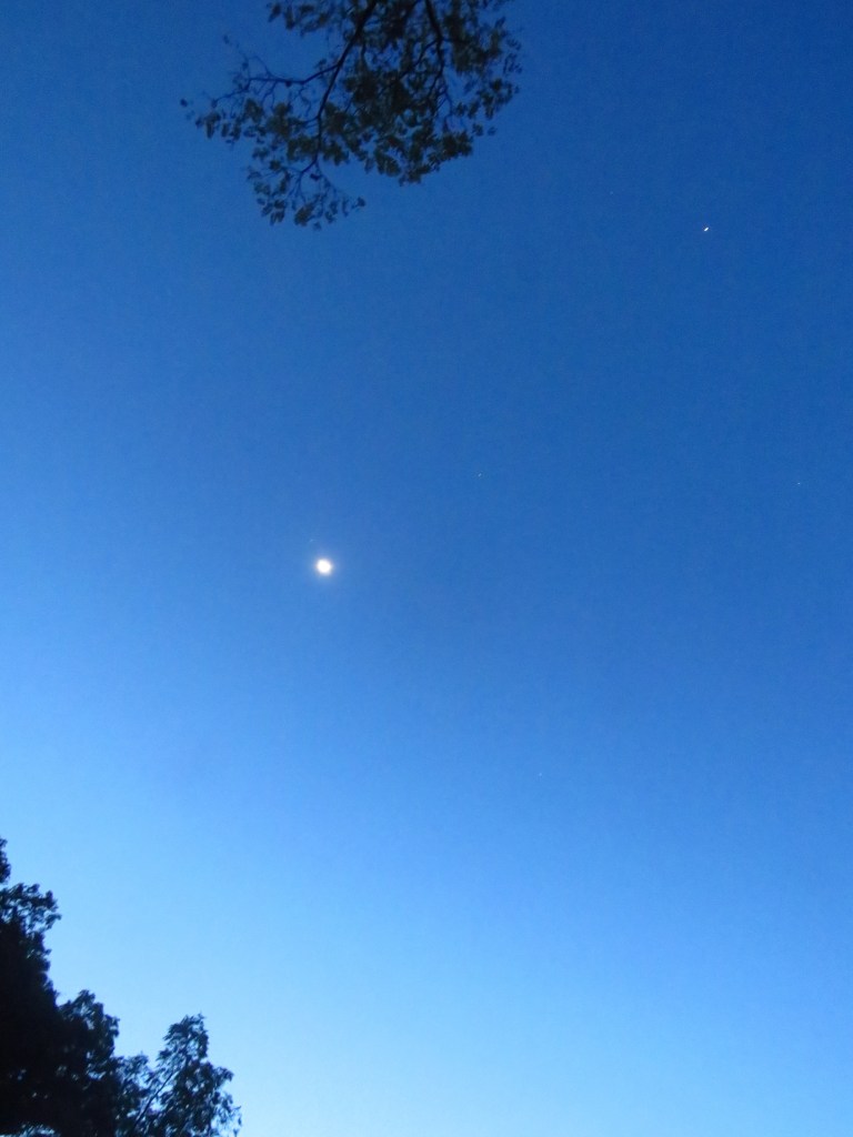 I have been thinking about what happened ever since. So yesterday morning, as I was sending my husband off to work, he pointed to the moon. The entire sky was covered by clouds except for that one spot, with the moon exactly in the center of the wreath of clouds. It was so beautiful that I decided as soon as I had the chance, I would capture an image of it. (But I wanted to wave goodbye to Jim first.)