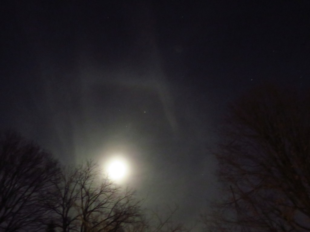 On Sunday night, I checked the skies just before I went to bed and saw this beautiful halo around the almost-full moon.