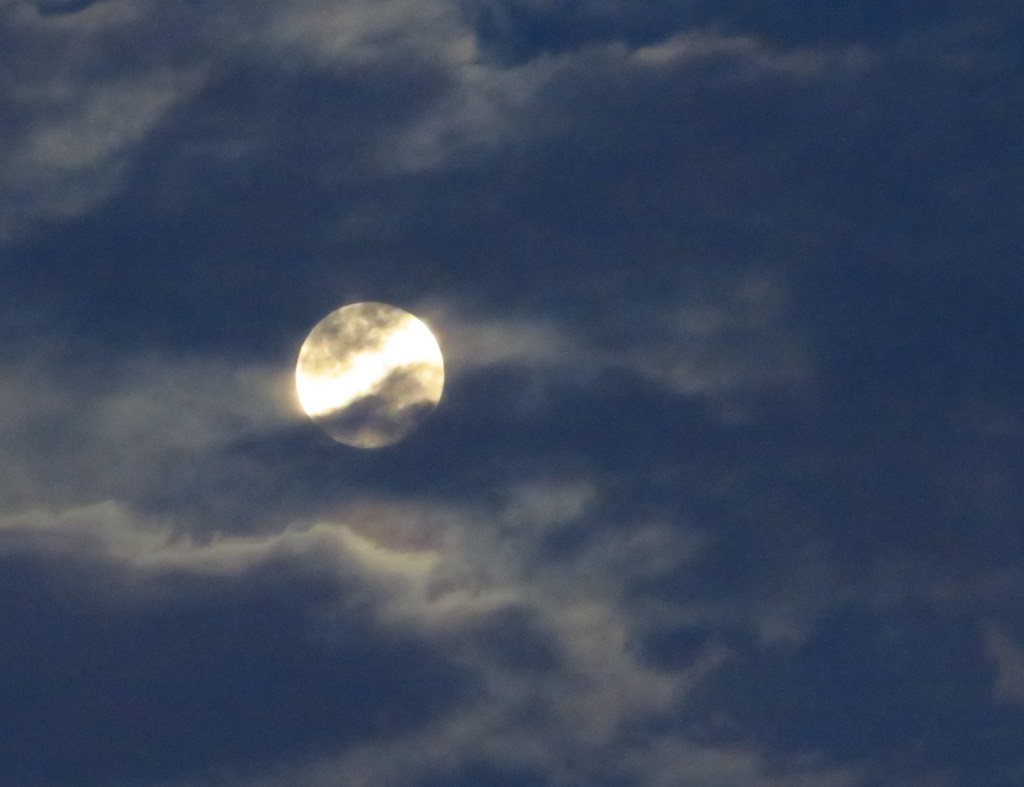 I continued to look to the east, and was amazed to see the colors radiating off the moon against the clouds.