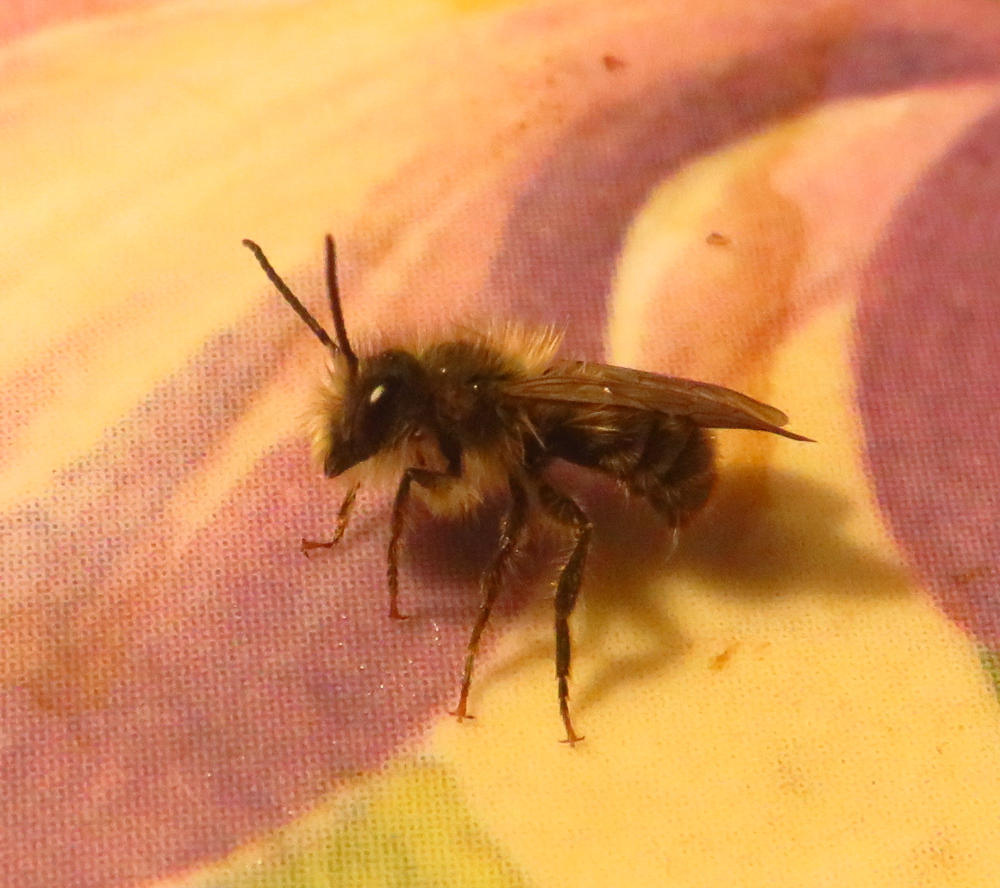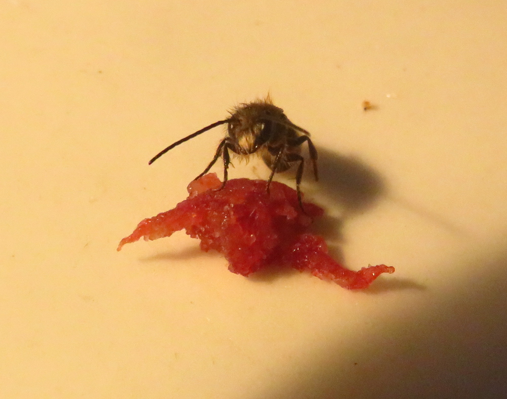 We love most insects, and usually try to relocate them to where they should be. But our weather has had lows in the 20’s for the past couple of nights, so we feared that putting the tiny bees outside in their just-emerged condition would have killed them for sure.
