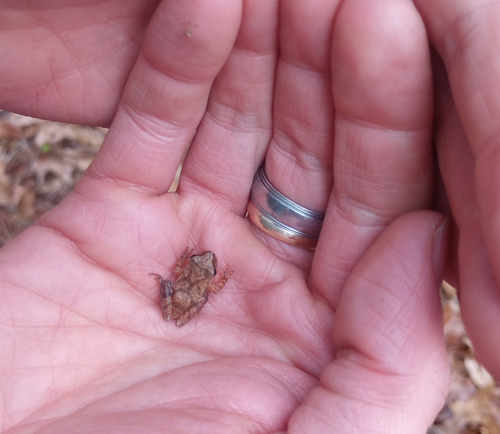 I was walking behind and so didn’t hear what I was supposed to be listening for, so I was just quiet, listening. There was a slight squeaky-creaky sound that came from the ground.