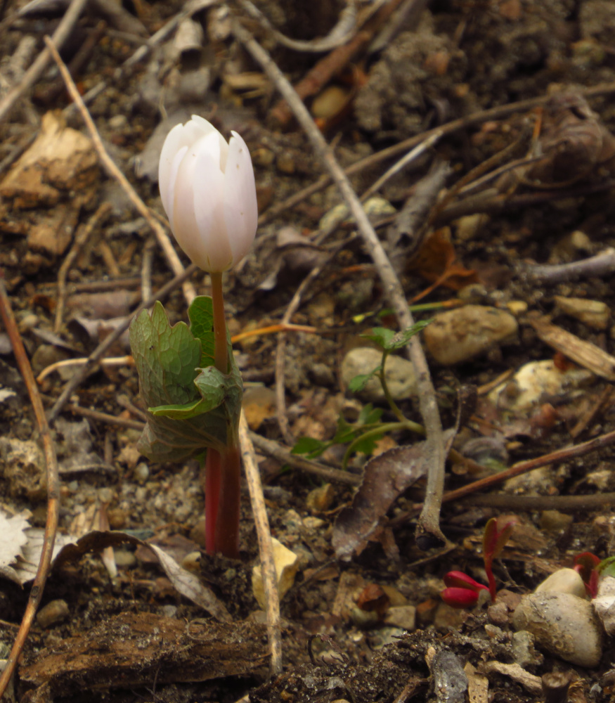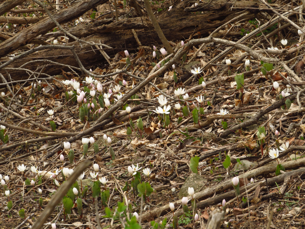 We walked along the stream, and found that a lot of the undergrowth and a large chunk of the woods has been removed. And while we miss the old landscape, there are new opportunities for things to grow in the sunlight, so we are eager to see what happens. But on the shady side, we found wildflowers!