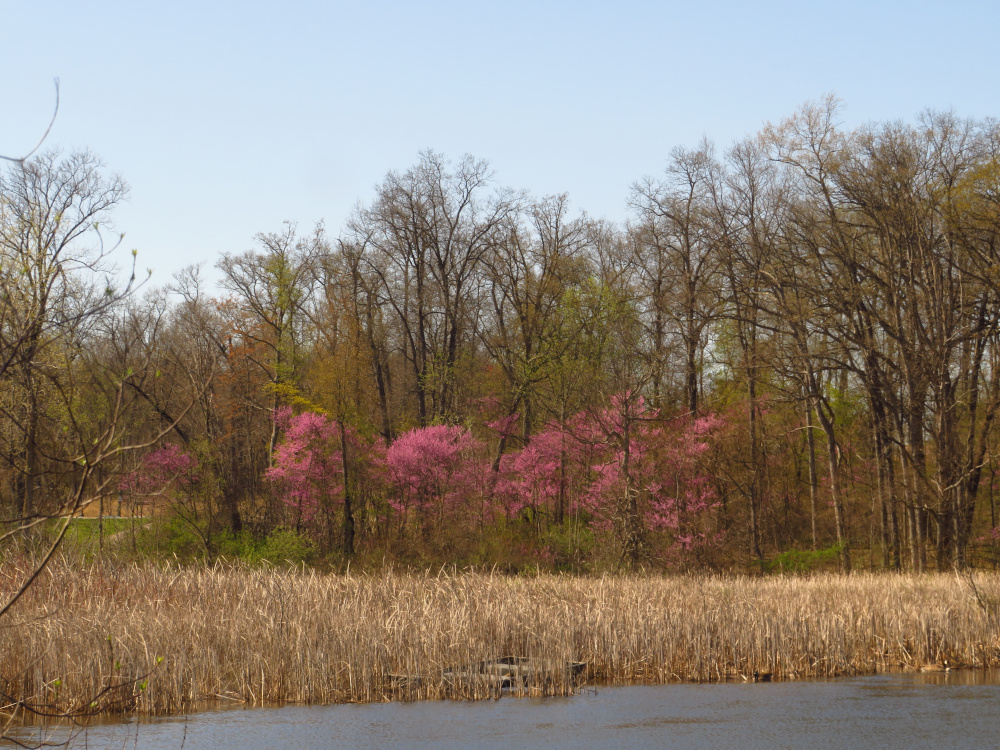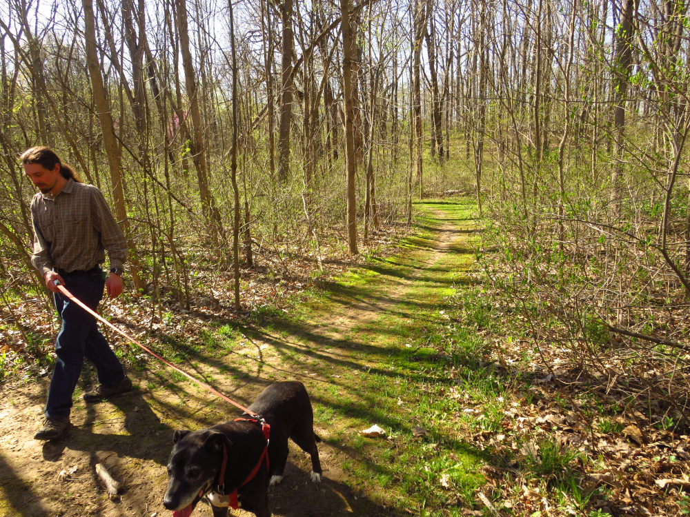 Wing Haven Nature Preserve has lots of trails, with water (both lake and stream), forest and meadow habitats. A large ravine there has trails around the rim, and another trail goes down to the bottom, where a stream runs through, and then the trail criss-crosses the stream via a series of bridges.