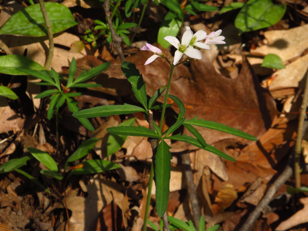 Toothwort is an interesting little flower, so memorably named for her roots, though the profile of the leaves looks toothed, too. These are not found in the western United States, only in the eastern half, but they exist all the way north into Canada. All parts are edible, and they have a peppery flavor. But don’t wait to look for these little ones! They are only here into early May, and then they’ll be gone until next year.