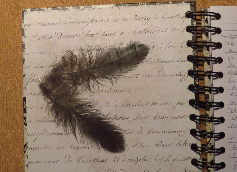 All this takes a lot longer to write and to read than it took in real life. When it was all over, after we buried her, I found two of her feathers on the ground. They were perfect. I brought them inside and taped them to the inside cover of my journal, so I would remember. And then I wrote down the story of how she sacrificed her comfort for me, even while she was dying. I never want to forget to be kind to others, even when I am suffering.