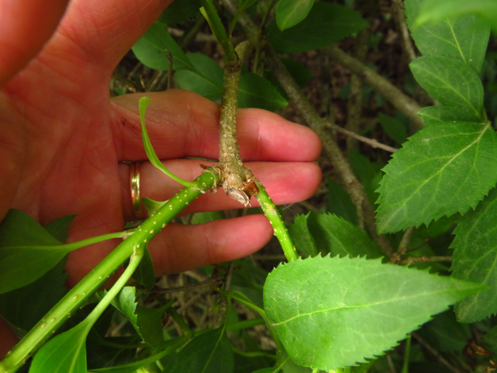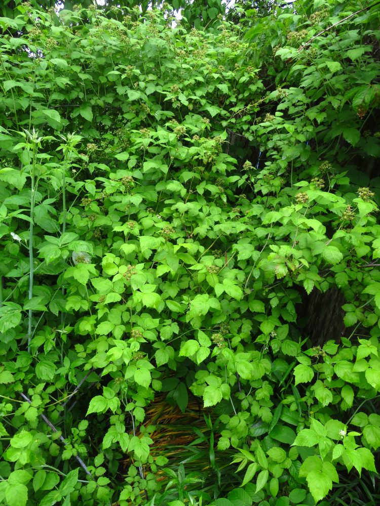 This year, we educated ourselves about how to do it, and then for the first time in late winter, we pruned our raspberries. As a control, we left one patch alone (the one above). We wanted to evaluate how much each method yielded.