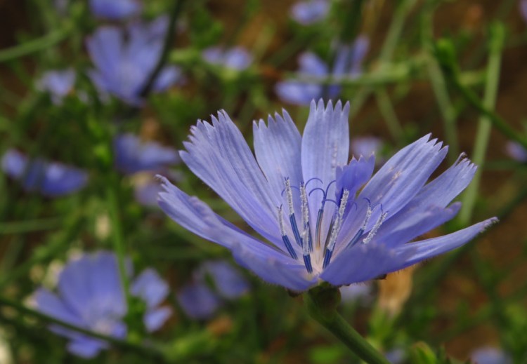 I remember chicory from my days of mowing lawn when I was a kid. A couple of days after I got the 2.5 acre lawn mowed (with a push mower!), the chicory was tall once again, and waving in the wind. Even during times of drought, the chicory seemed unaffected, putting out new growth while the lawn stalled.