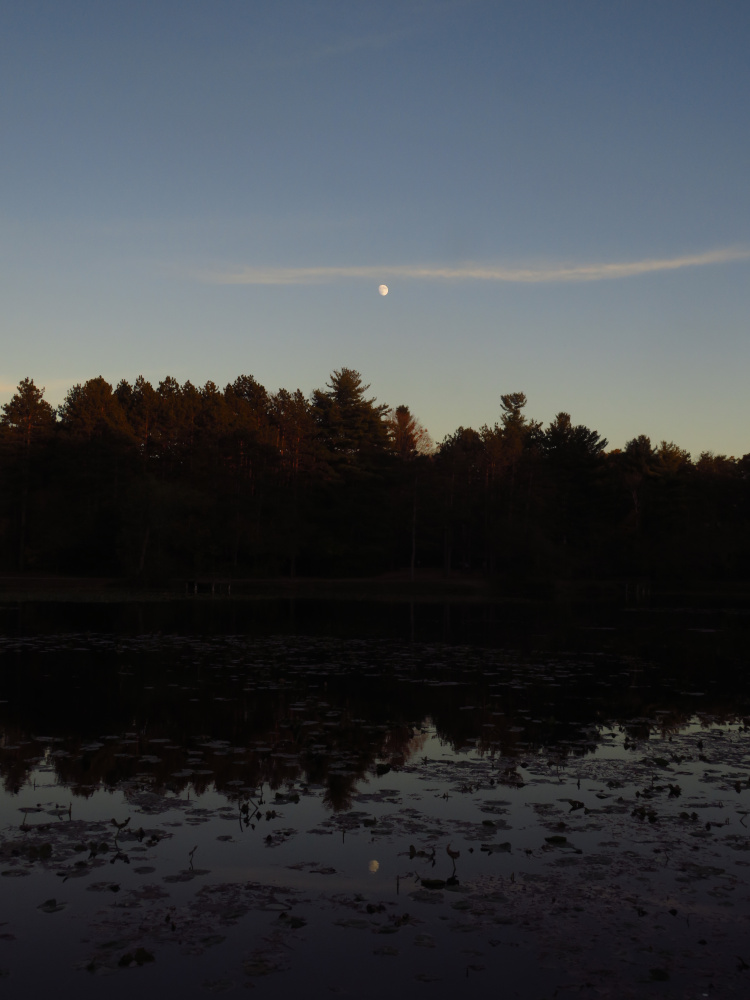But on Sunday, we put it all aside and went for our regular walk at Lewis Emery Park. And I was so glad we did! What a beautiful, chilly fall day it was! I looked up to the sky as we pulled into the drive, and I saw the moon in the afternoon sky.