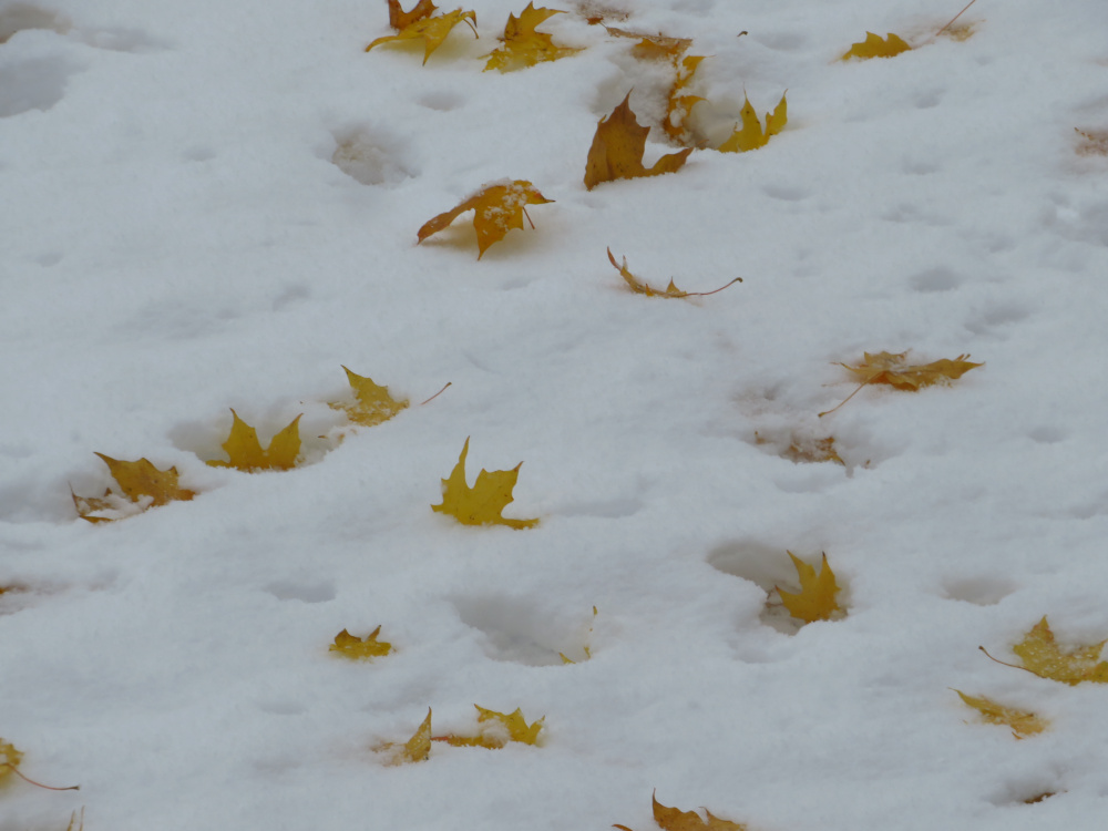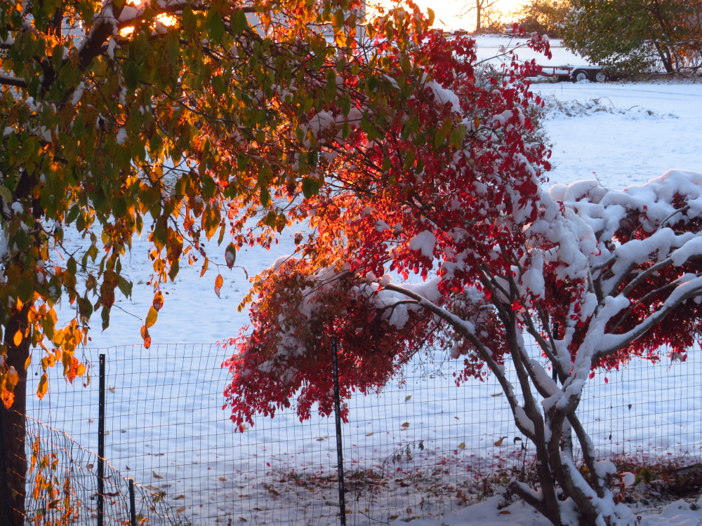 It was a memorable first snow, though, with the bright autumn colors still there, peeking out from underneath the snow.