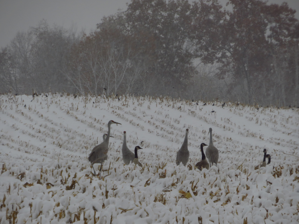 The sudden change in conditions created an interesting migration quandary last Sunday afternoon. On our way home from the park, we found a field with all kinds of birds waiting. Maybe they were preparing to take off on their flight to warmer climates.
