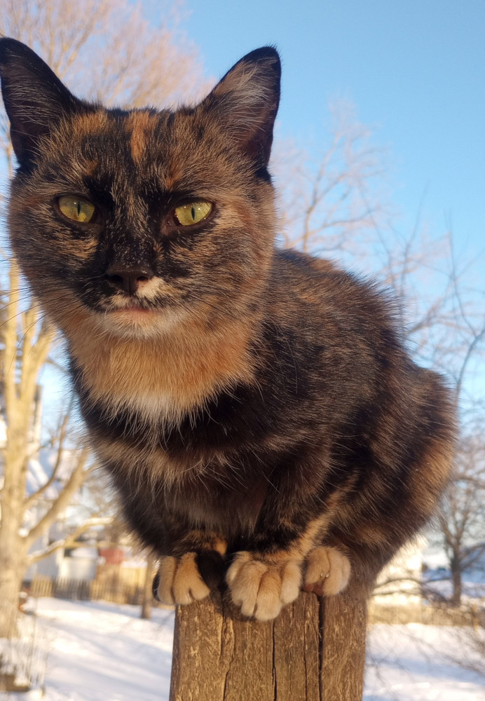 In other business, do you remember “hissing Confetti”, the stand-offish kitten that wouldn’t allow herself to be touched? Well, she is now very affectionate, as long as I don’t try to pick her up, and waits for me in the mornings when I take pictures of the sky!