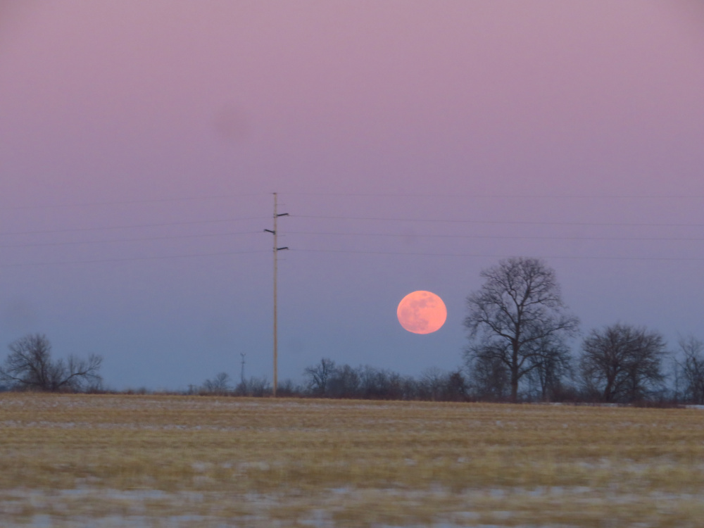 We went out for a drive last Sunday, but were unable to make it to our favorite park. While we are missing our friends in Park Security, the view across the snow-covered fields has been quite beautiful. Did you see the almost-full moon rise on Sunday night?