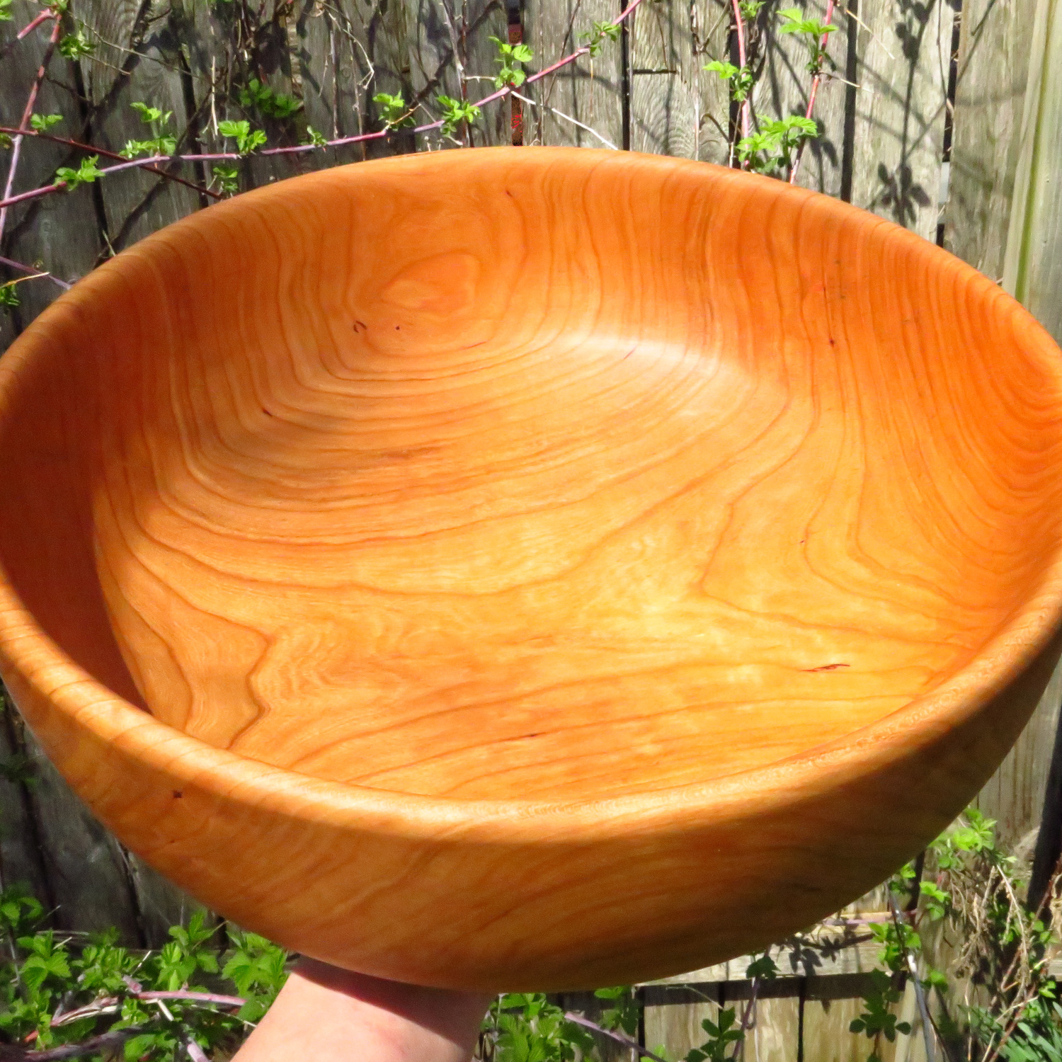 Hearty, wholesome, homemade bread is just begging to get started in this heirloom-worthy dough bowl! Turned from a solid piece of cherry wood, this extra-large bowl (13 1/4″ by 4 1/2″) is heavy, weighing over 5 pounds. The bottom is extra thick to handle the stress of hand-kneading the dough, and is plugged with aContinue reading “Double-delicious Dough Bowl!”